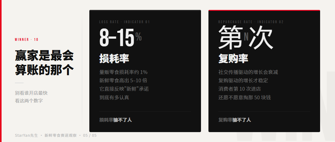 损耗率骗不了人,它直接反映了这家公司对"新鲜"这个承诺到底有多认真。复购率骗不了人,它直接反映了消费者在第十次进店时,还愿不愿意掏那50块钱。