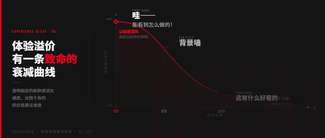 新鲜零食面对完全一样的问题。你的透明厨房,消费者第一次进店:哇,能看到怎么做的。第五次:背景墙。第十次:这有什么好看的。