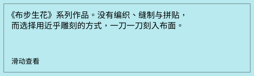 近10年过去,布料图书馆慢慢长成一个比较完整的体系:一边持续做面料研发,推出大量原创布料;一边把这些面料做成样衣和产品,让品牌和设计师知道它到底能怎么用。现在,她还想探索新的可能性:打破布料工艺和艺术的边界,让布料承载艺术表达。「布步生花」展览就是她的一次尝试。