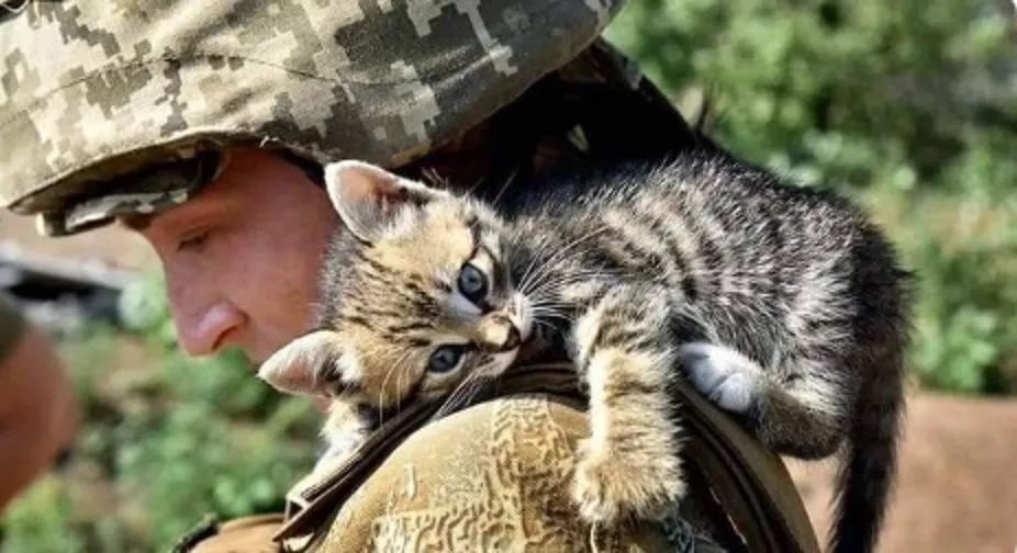 乌克兰士兵和猫,在社媒上几乎成了固定组合:士兵在战壕里抱着小猫、拯救抱着小猫的奶奶……