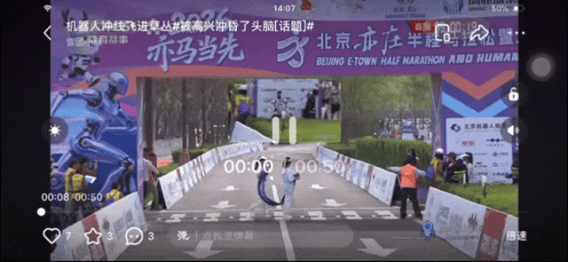 一年后,赛场规则本身发生变化,陪跑员被取消,人工干预被严格限制,场内外换电会直接影响成绩计算,有40%的机器人实现了自主导航。人形机器人第一次独立面对一条复杂而漫长的真实道路。但最快完赛时间直接缩短近两个小时,最短完赛时间为50分26秒,机器人从面前掠过,只剩一道残影。