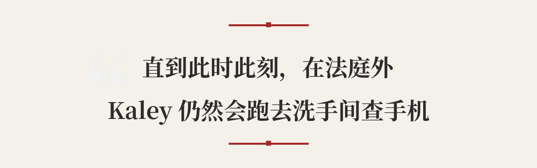 她承认她停不下来,承认她试过、失败了,直到现在,在法庭交锋的时候,她依然会跑去洗手间,查看自己的手机。