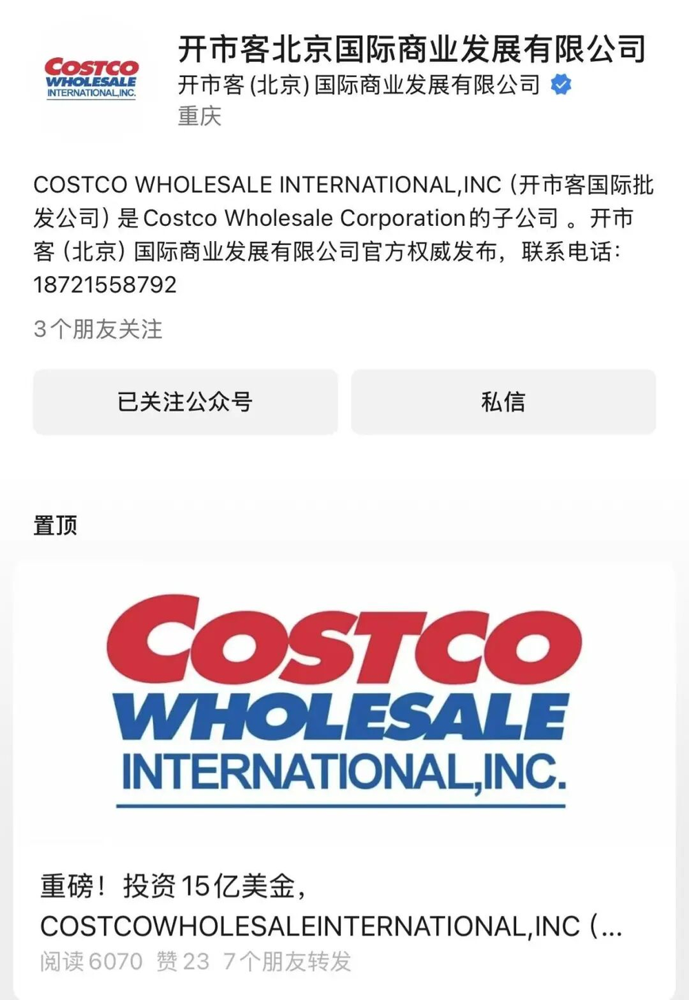 而目前已经在中国大陆地区开设7家门店的开市客(中国)投资有限公司对媒体进行了辟谣,据开市客方面向时代财经回应,《开市客北京国际商业发展有限公司》公众号并非官方账号,官方公众号以“Costco开市客”为准,官方账号的认证主体为开市客(中国)投资有限公司。