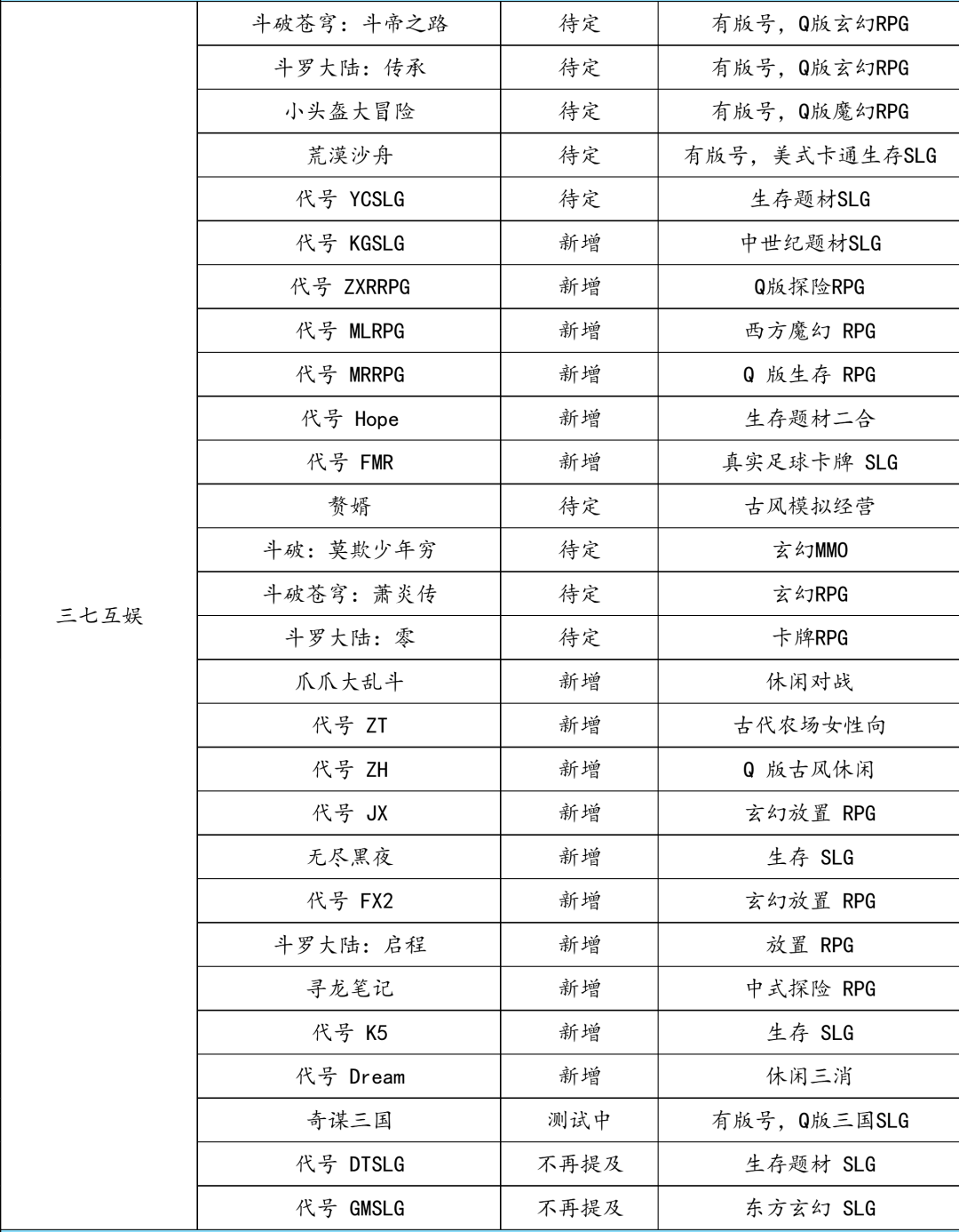 在储备游戏方面,三七互娱藏了不少,不过多数还处于开发早期阶段。