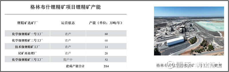 综合权益比例折算,天齐锂业在格林布什锂辉石矿对应的权益碳酸锂产能为5.46万吨LCE。