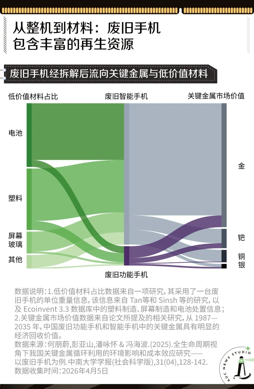 [7]何朋蔚,彭亚山,潘咏怀&冯海波.(2025).全生命周期视角下我国关键金属循环利用的环境影响和成本效应研究——以废旧手机为例.中南大学学报(社会科学版),31(04),128-142.