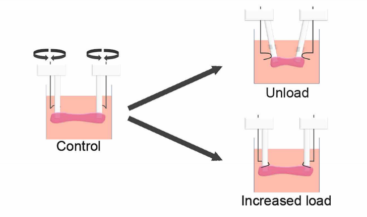 接下来,研究团队构建了两种模型,一种是“异位心脏移植”模型,将供体小鼠心脏移植到受体小鼠的颈部,使其恢复血液灌注但不承受泵血所产生的机械负荷。另一种是可精确控制机械负荷的“工程心脏组织”模型。