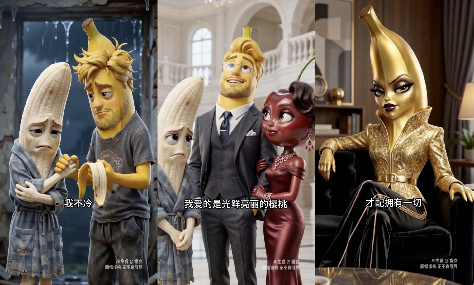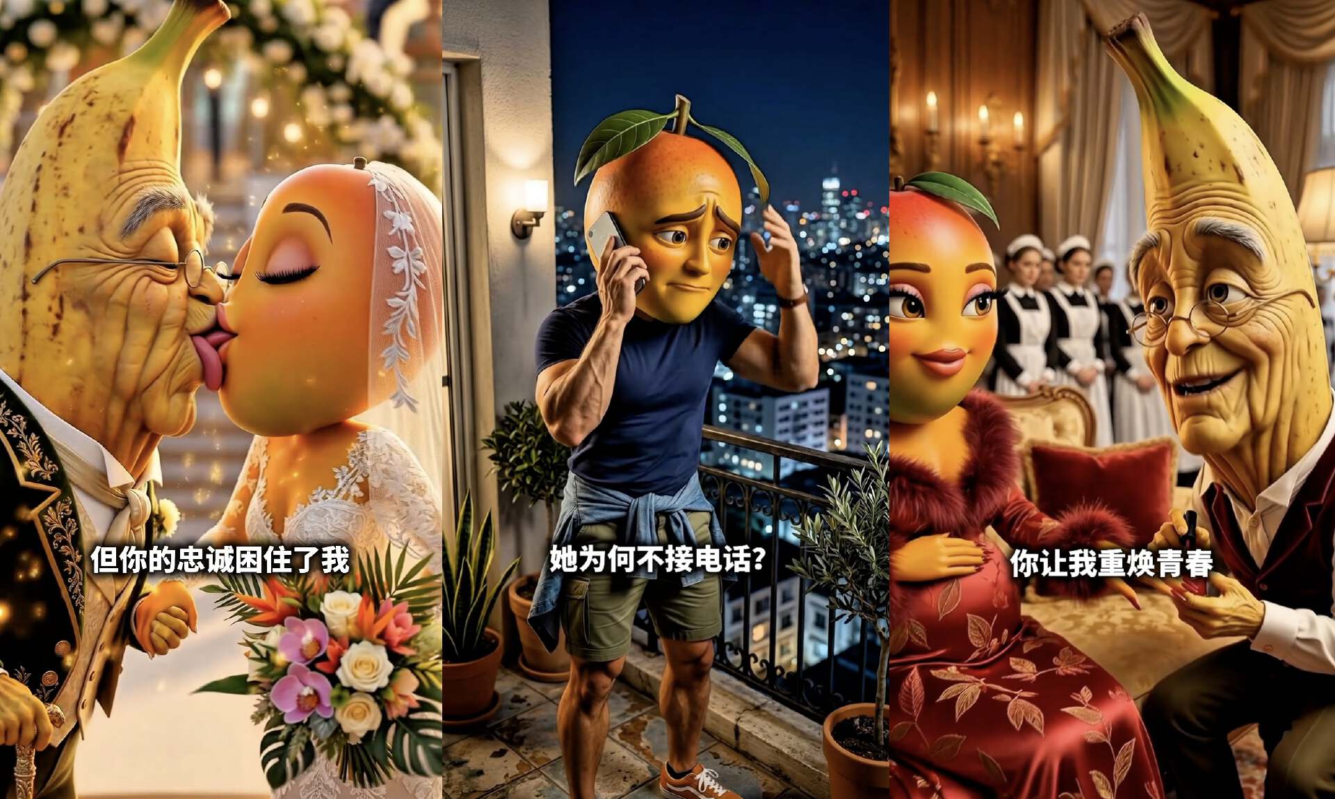 拆解这些水果AI剧情,你会发现人类真是一种脆弱低级的动物。明知道要发生什么,还是忍不住追着看,对着几个家常水果傻乐。