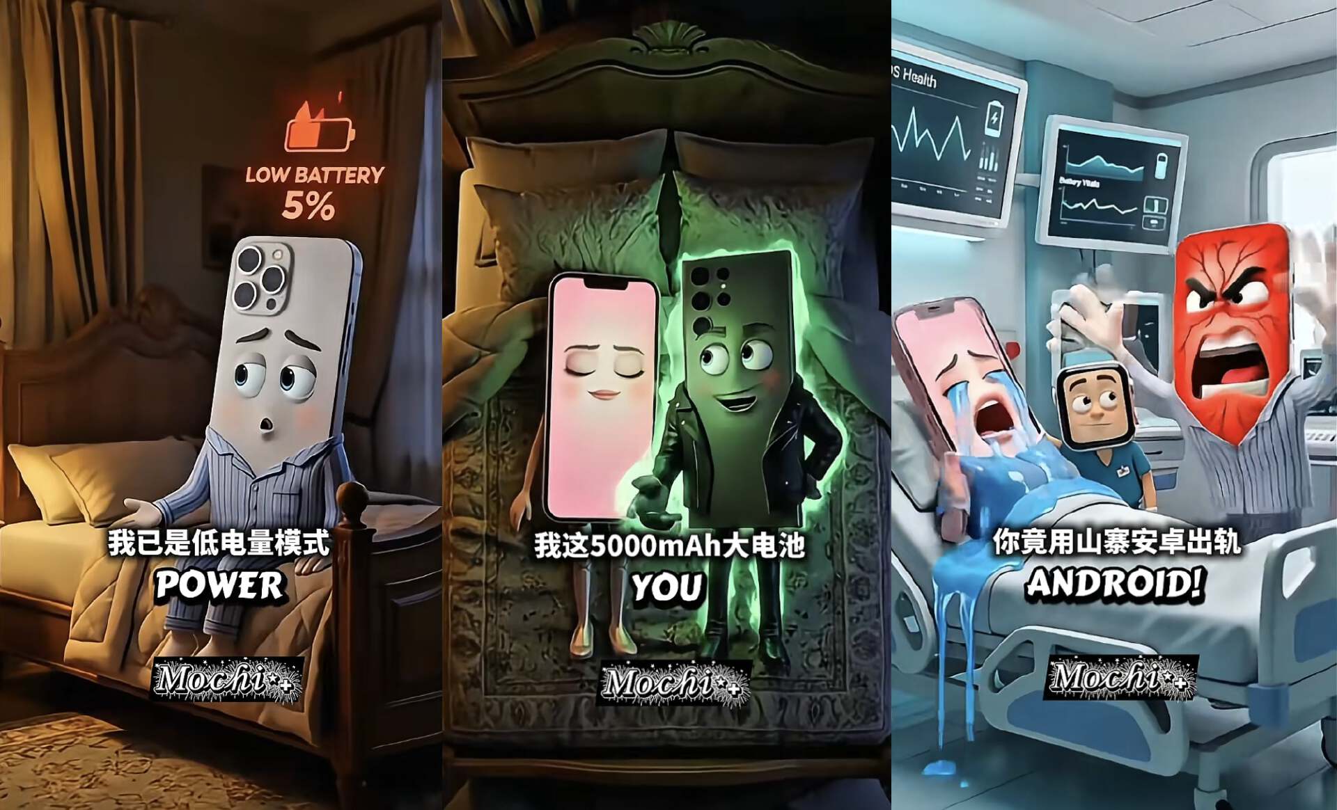 iPhone姐嫌弃iPhone哥“充电”节奏太慢,“充电量”太低,于是出轨三星哥给自己“快充”一番。