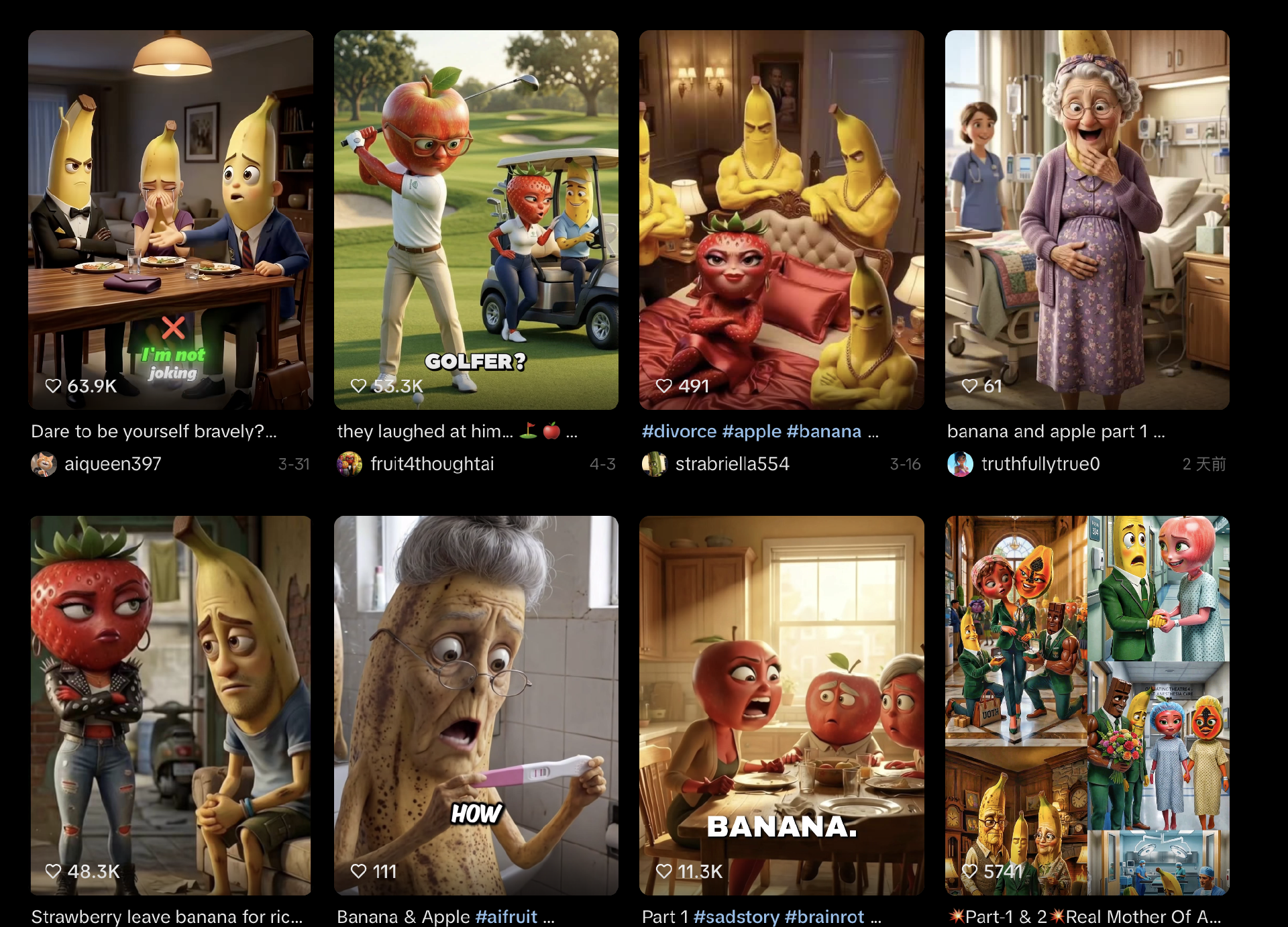 于是越来越多账号加入了水果AI的创作大军。