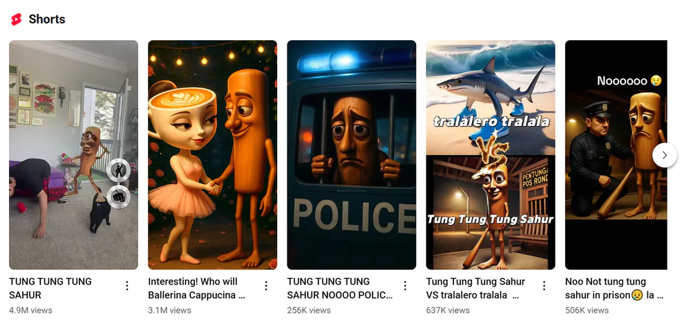 木棍人、耐克鲨鱼、卡布奇诺姐。这些诡异且抽象的克苏鲁视频,毫无逻辑地在TikTok和YouTube上收获流量。