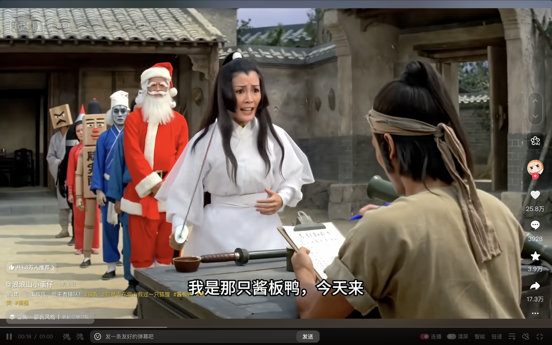 故事的起因是,一个卖酱板鸭商家,套用了邵氏电影风格,做出了一个意料之外的AI爆款视频。