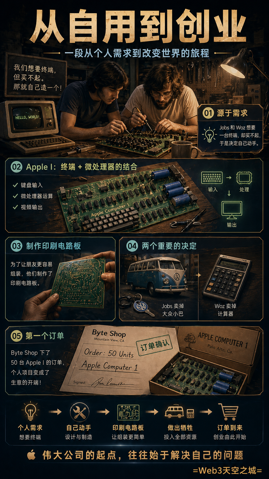 所以我们先是制造了终端,然后制造了Apple I。我们制造它其实是为了自用,因为我们买不起任何现成的设备。