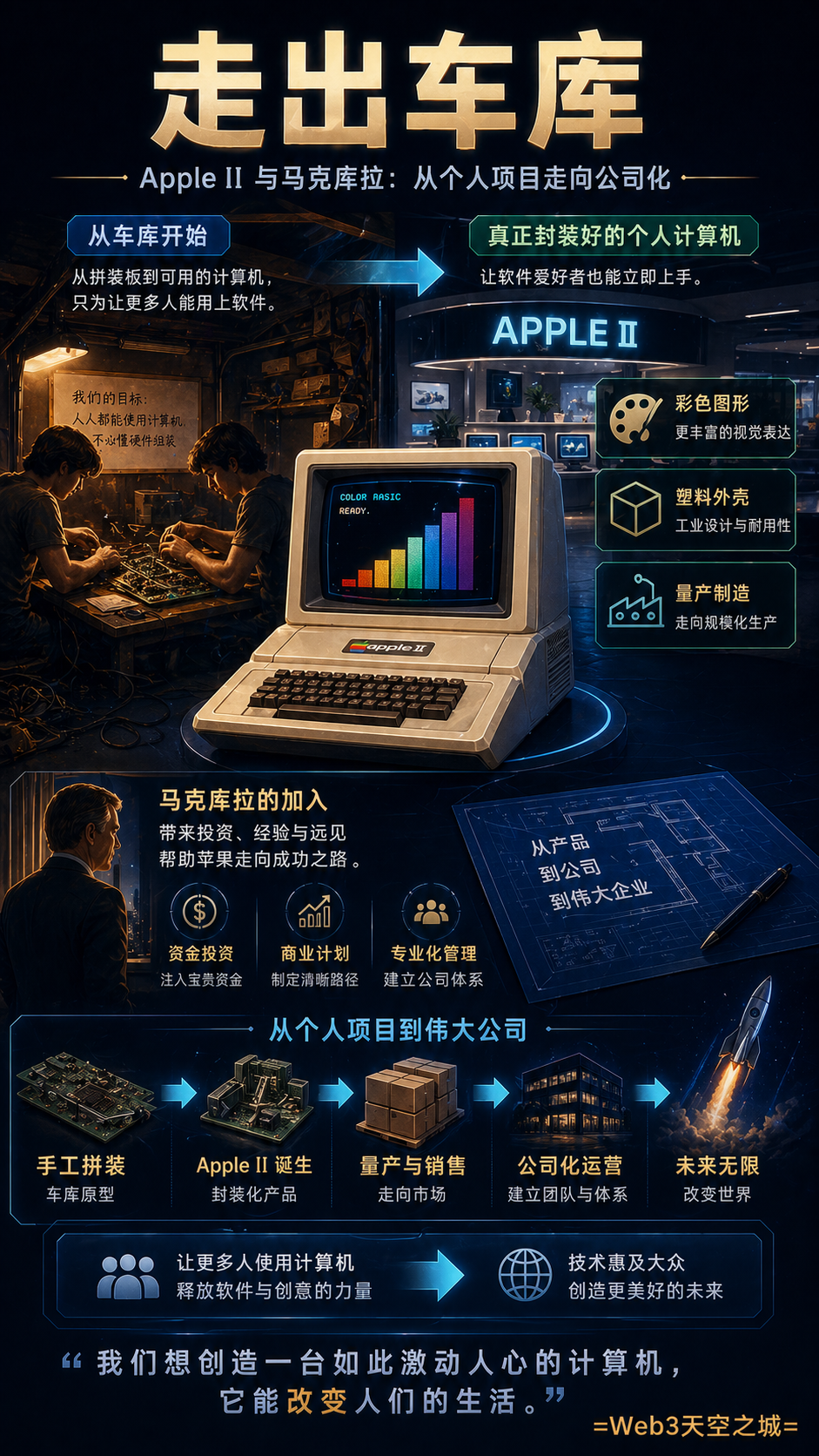 Steve Jobs:我和Mike非常投缘。于是Mike说,几周后我会投入资金。我说,不。现在我们不想要你的钱。我们想要的是你。所以我们说服了Mike,让他以平等合伙人的身份加入我们。于是Mike投入了一些资金。Mike投入了他自己的一些资金。而Mike也亲自投入其中。我们三个人一起出发,采用了这个几乎在Apple II上完成的设计,将其投入生产,并在几个月后的West Coast Computer Fair上发布。