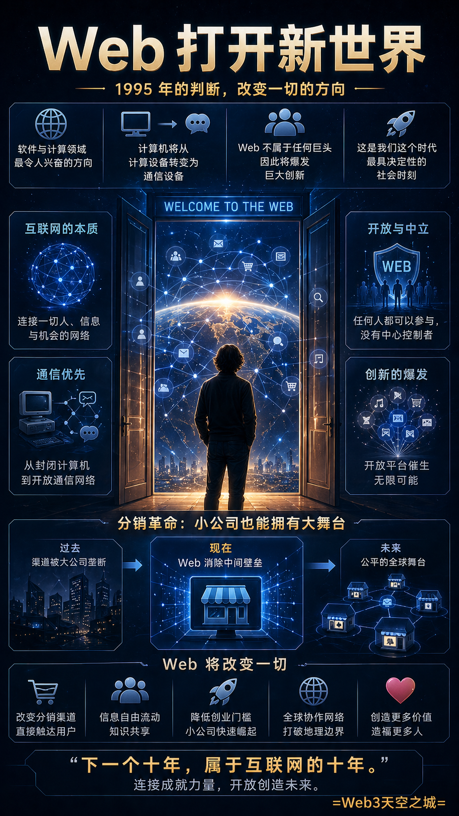 早在1995年,当大多数人还把电脑看作处理文档的机器时,乔布斯就已经精准预言了互联网的本质。他认为,互联网和万维网的崛起将是计算领域最具决定性的时刻,因为它让计算机完成了从“计算工具”到“通信工具”的蜕变。