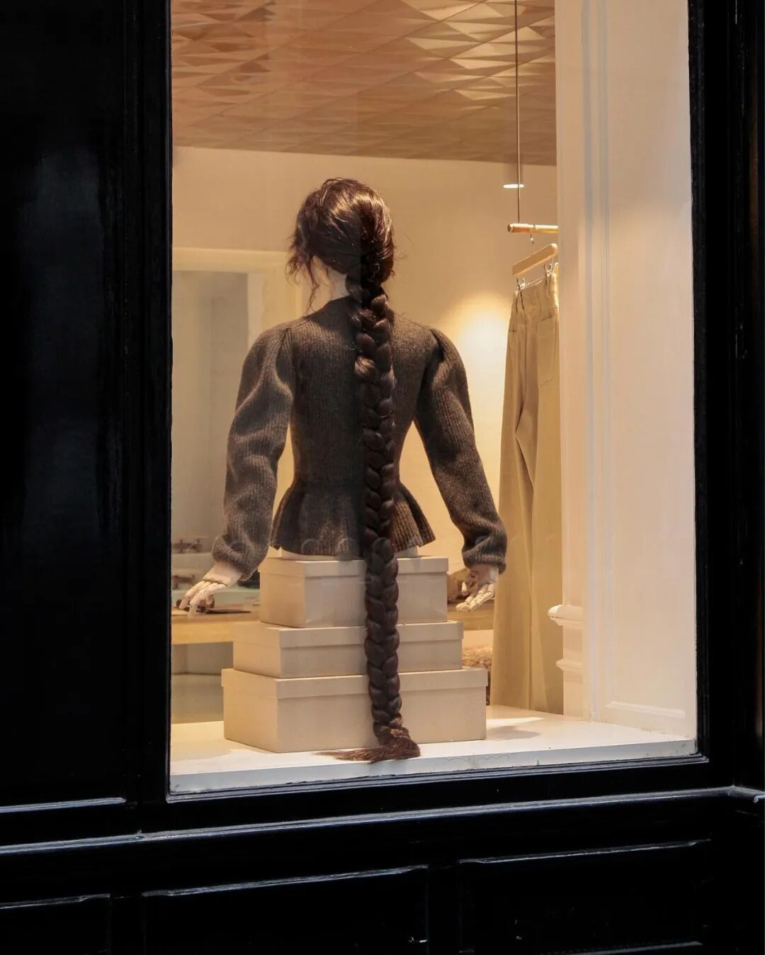 也有观点认为,此举或许并非针对中国市场的刻意为之,而是源自品牌与巴黎Marisol美发沙龙曾以“辫子”为造型进行共创。例如小红书用户@莱克西xi就援引品牌2021年的Instagram内容称,Lemaire当时与擅长假发创作的Marisol合作,打造过巨型辫子与“毛绒头颅”装置,并于巴黎店铺橱窗展示。