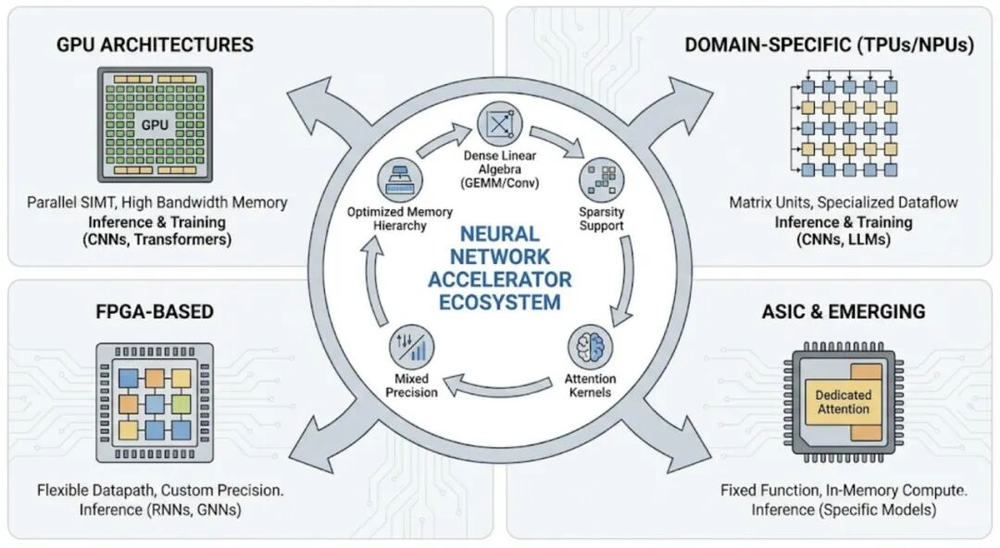 过去十年,AI硬件已经演化成一个非常庞杂的生态,不同架构在设计空间里做出了不同的权衡。