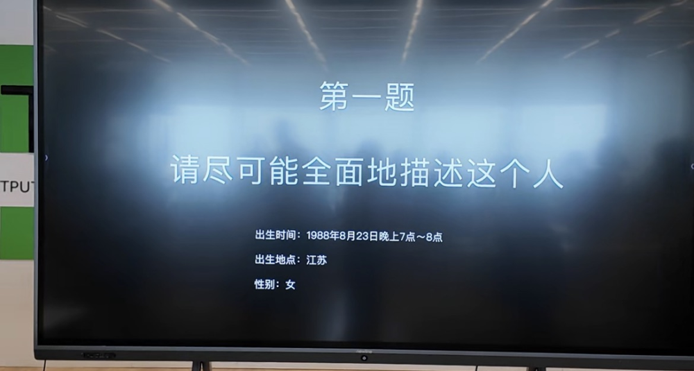 第一题,给出一个人的出生时间、地点和性别,让所有人描述她。