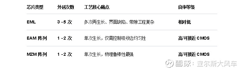 有人会问,良率如何控制,其实核心在于:把DFB进行了剥离后,MZM和EAM的良率都会有大幅的提升: