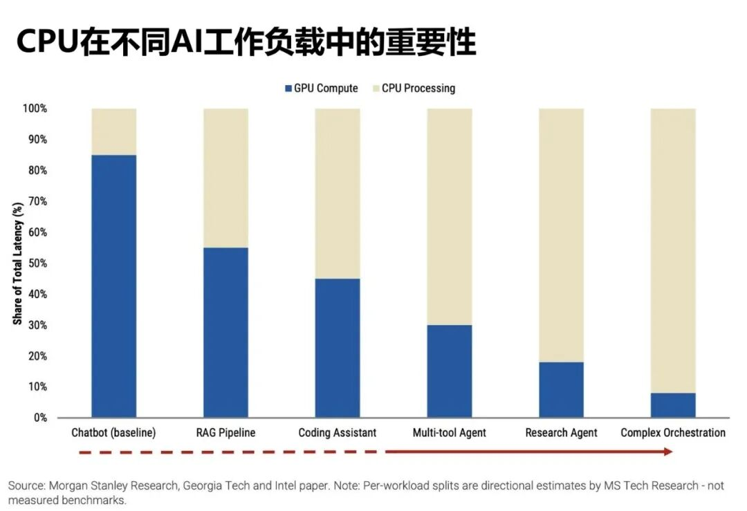 回顾ChatGPT发布至今,初入AI时代,市场首先看到的是扩展定律支配下,越来越庞大的参数规模与预训练数据集,支撑着庞大的训练算力需求;随后,o1发布,市场预期在“杰文斯悖论”生效下,AI推理继续吞噬浮点计算的能力。当这一切真正到来后,市场很快意识到,在高效、持续、低成本地生成token的过程中,数据移动成为新的瓶颈。于是,资本开支向存储与网络迁移。如今,在智能体时代,作为系统调度与工具调用关键瓶颈的CPU,迎来了自己的复兴。