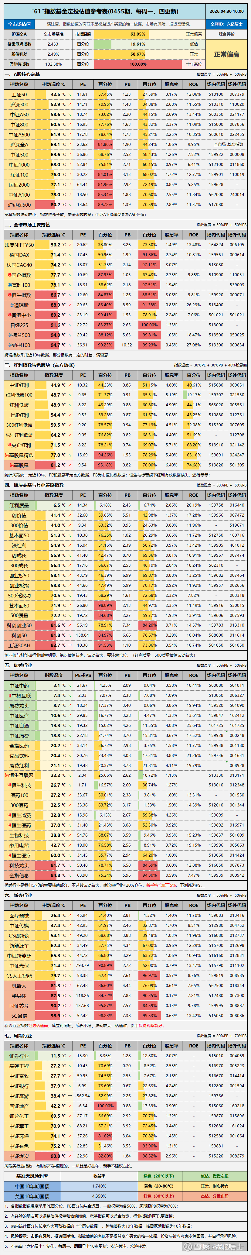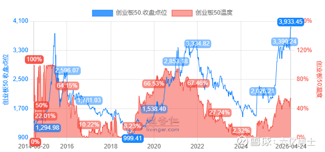 2026年4月:指数新高至4061.28点,温度约55°。指数点位创历史新高,但估值刚过中枢。