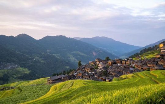 贵州从江加榜梯田里的稻谷进入成熟期 层层叠叠宛如画卷