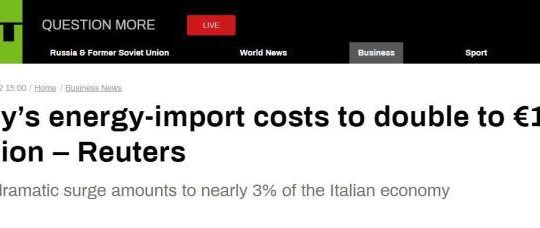 意大利官员称能源进口成本预计将增加一倍多,达1000亿欧元