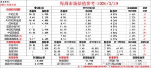 每周市场估值参考&留言回复-2026/03/29